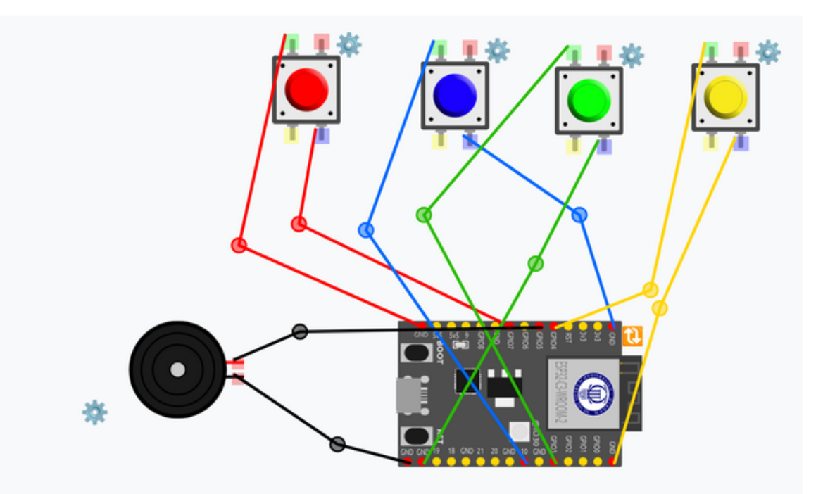.data # GPIO buzzerPin: .word 5 buttons: .word 7,10,3,4 # Notes notes: .word 262,294,330,392 # aux button_count: .word 4 anyPressed: .byte -1 .align 4 button_handlers: .word handleButton0 .word handleButton1 .word handleButton2 .word handleButton3Setup: Configure all pins In this case, we are going to complicate things a little, as there are a lot of pins to configure. First, we will configure pin 5 of the buzzer, which, unlike the buttons, will use an OUTPUT mode (since it emits a sound to the outside).