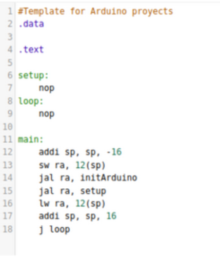 setup: li a0,115200 addi sp, sp, -4 sw ra, 0(sp) jal ra, serial_begin lw ra, 0(sp) addi sp, sp,4 jr raLoop: Check if the terminal is correctly open. A good practice that can be seen in Arduino is to use serial_available to see if the terminal has opened correctly.